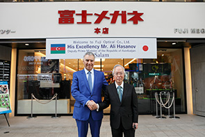 アゼルバイジャン共和国 アリ・ハサノフ副首相ご一行6名(ギュルセル・イスマイルザーデ駐日アゼルバイジャン共和国特命全権大使、フアド・フセイノフ難民・国内避難民問題委員会副大臣、ララ・アミジリ難民・国内避難民問題及び移住問題課シニア・アドバイザー、ロフシャン・ミルザエフ駐日アゼルバイジャン共和国大使館一等書記官、ヴガール・アガイエフ アゼルバイジャン国営テレビ局記者)が富士メガネを訪問。狸小路本店でメディアの記者会見が行われた他、海外難民視力支援活動で寄贈される眼鏡の製作工程を視察