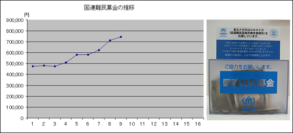 - 2013年から開始した「世界難民の日」にUNHCRへ10年間で100万米ドル(毎年10万ドル)の寄付の3回目となる10万米ドルを、国連UNHCR協会を通じて送金