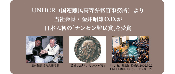当社会長・金井昭雄O.D.は長年に亘って実施してきた「海外難民への視力支援活動」の功績が認められ、日本人で初めて、企業経営者としても初の受賞となりました。(2006年10月)